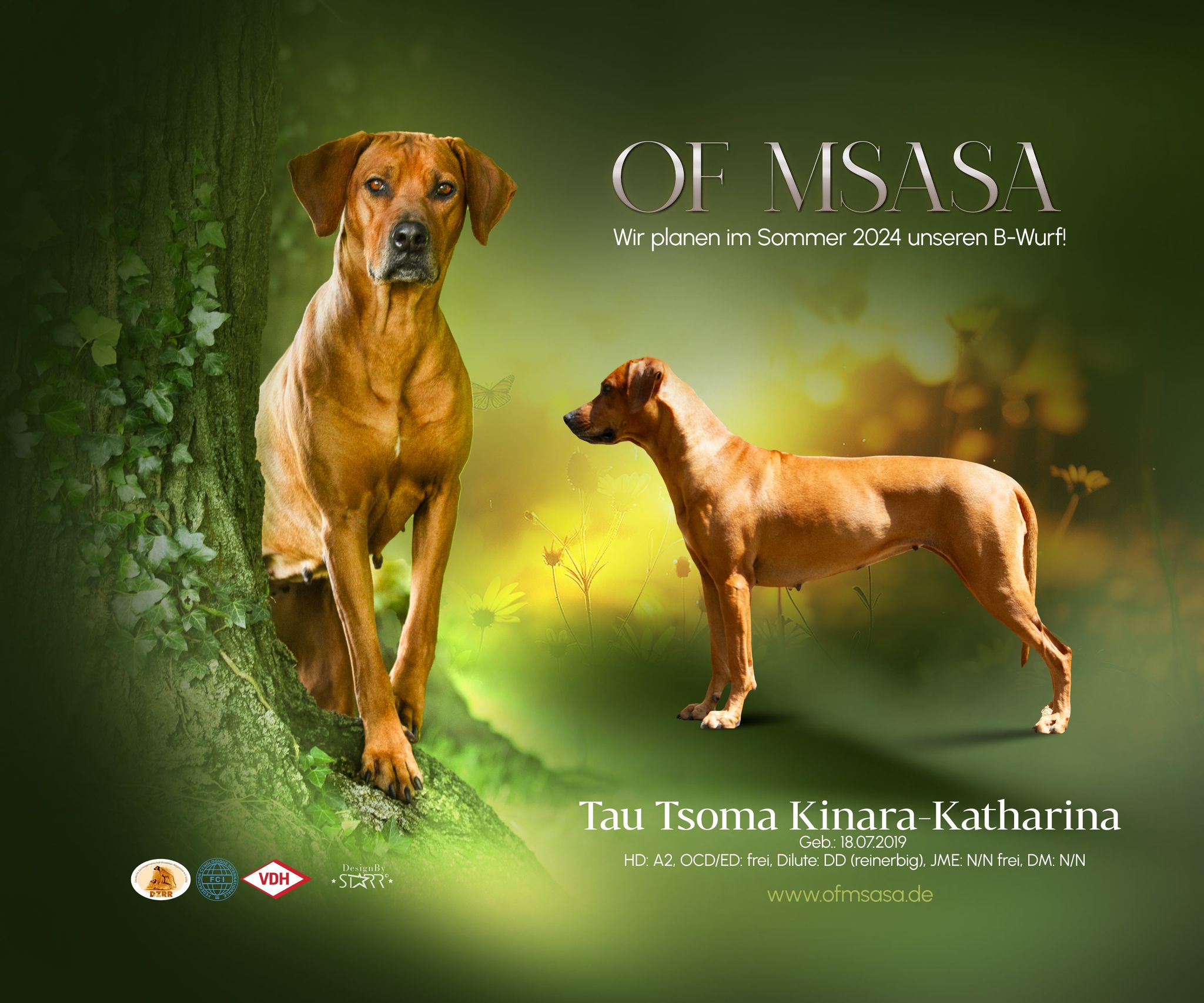 Kinara-Katharina von Silke & Thomas aus Krefeld, Zwinger "of Msasa" sowie Kianga-Mialia von Max und Nadine, Zwinger "of Filabusi" aus Holte-Stukenbrock haben in 2022 ihre Zuchtzulassungsprüfungen bestanden.